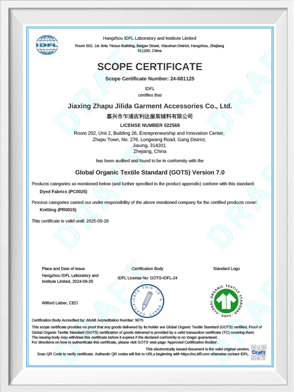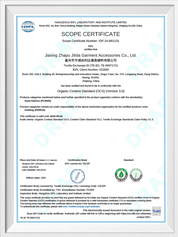 Kuten Jiashan Zhapu Jilida Clothing Asscessores Co., Ltd., jolla on rikas kokemus tuotekehityksestä ja tuotannosta, olemme hyvin tietoisia polyesteriraaka -aineiden eritelmien tärkeydestä uritettujen kankaiden suorituskykyyn. Yhteistyössä kansainvälisten ensimmäisen linjan tuotemerkkien, kuten A&F: n, H&M: n ja Uniqlo, kanssa jatkamme polyesteriraaka-aineiden valinnan ja suhteen tutkimista ja optimointia yhdessä edistyneiden tuotantoprosessien ja teknologisten innovaatioiden kanssa varmistaakseen, että jokainen kylkilugas pystyy täyttämään tarkasti asiakkaiden joustavuuden, voiman ja kulutuksen tarpeita. Ammattimainen tiimimme räätälöi polyesteriraaka -aineiden tekniset tiedot erityisten sovellusskenaarioiden ja asiakkaiden tarpeiden mukaisesti, varmistaa lähteestä tuotteen laatu ja auttaa asiakkaita saamaan kilpailuetuja globaaleilla markkinoilla. Jatkuvan teknologisen innovaatioiden ja laadun parantamisen avulla Jilida ei ole vain paikka kotimarkkinoilla, vaan myös vienti korkealaatuisia tuotteita ulkomaille, voittaen laajan kansainvälisen tunnustuksen.