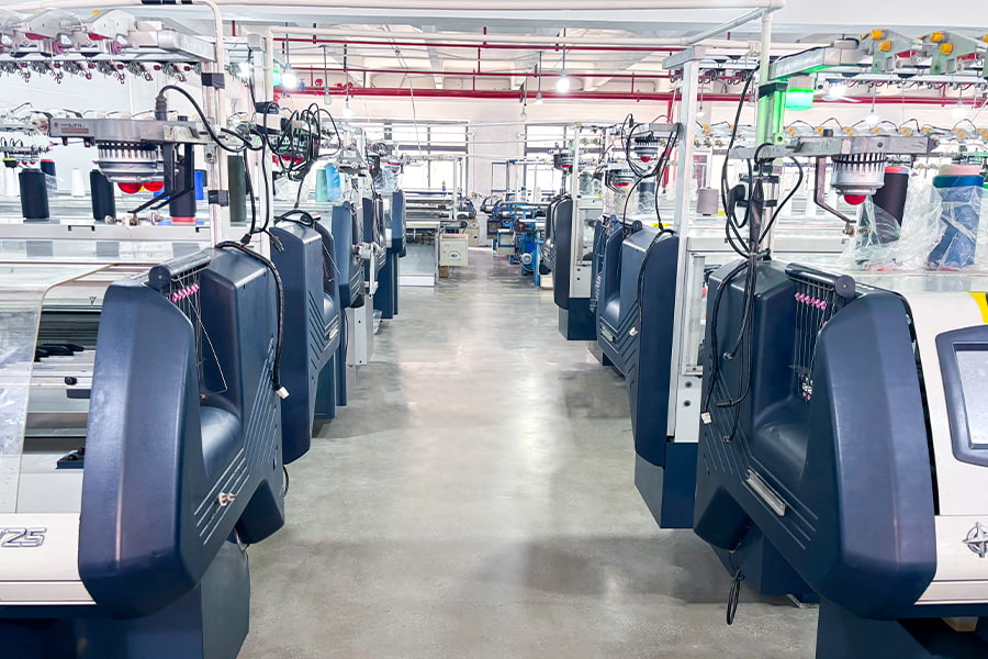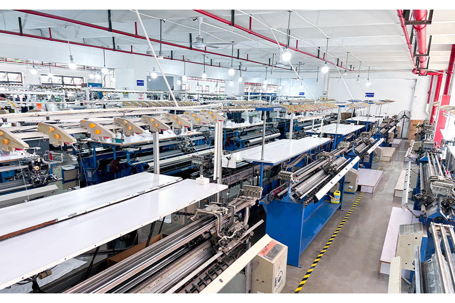 Yrityksellä on 200 edistynyttä tietokoneohjattua neulekonetta tehokkaan tuotannon ja erinomaisen tuotelaadun varmistamiseksi ja globaalien asiakkaiden monipuolisten tarpeiden täyttämiseksi.